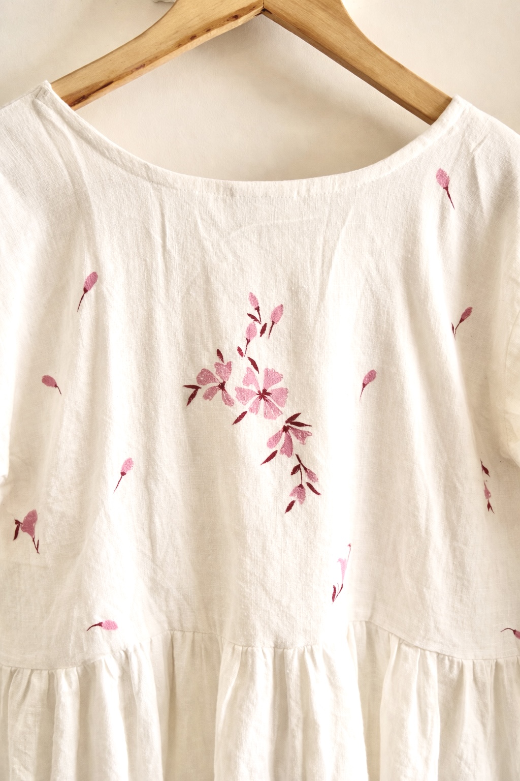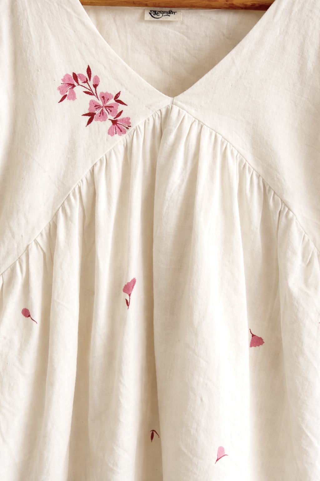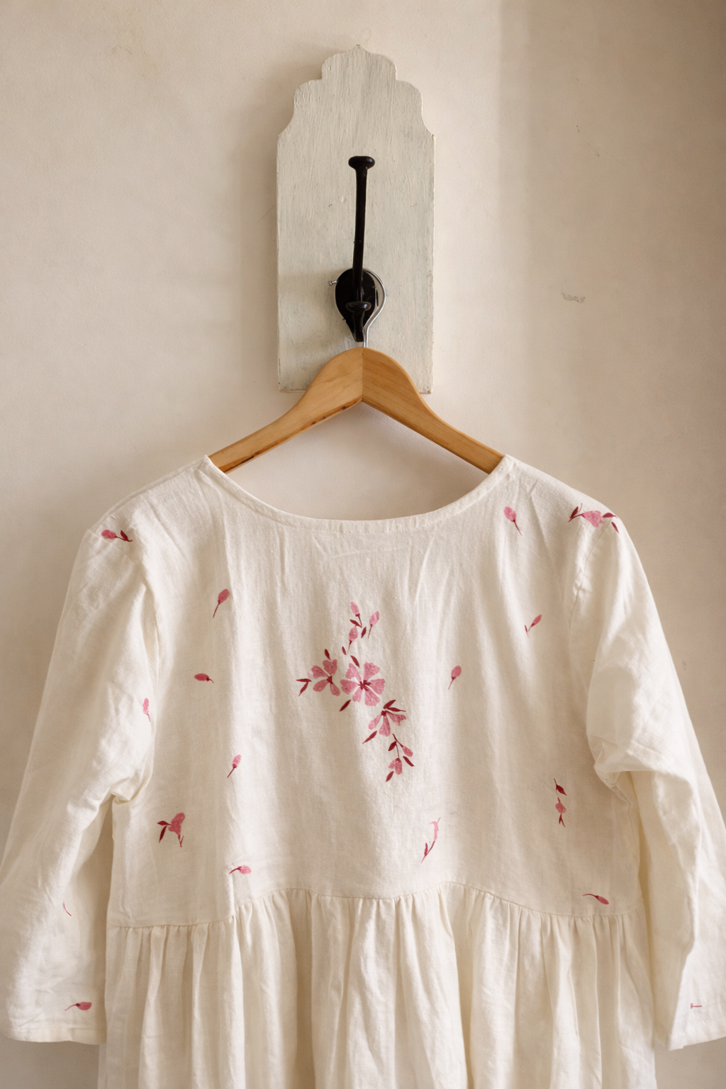 Crafted in 100% pure khadi cotton, this ivory dress embodies breathable comfort with a refined, handcrafted touch. The design features a graceful overlap (angrakha-style) yoke that gently gathers into a flowy, relaxed shape making it comfortable and easy to wear every day.