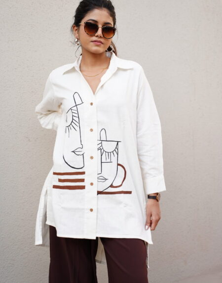 White Hand-Painted Khadi Shirt Dress(Akriti)
