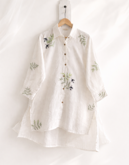 Subtle floral details add a graceful artistic touch, blending simplicity with charm. Thoughtfully made for those who value slow fashion and